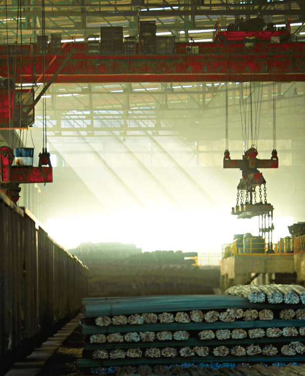 圖為烏鋼通過企業(yè)自有鐵路專用線裝運(yùn)鋼材。