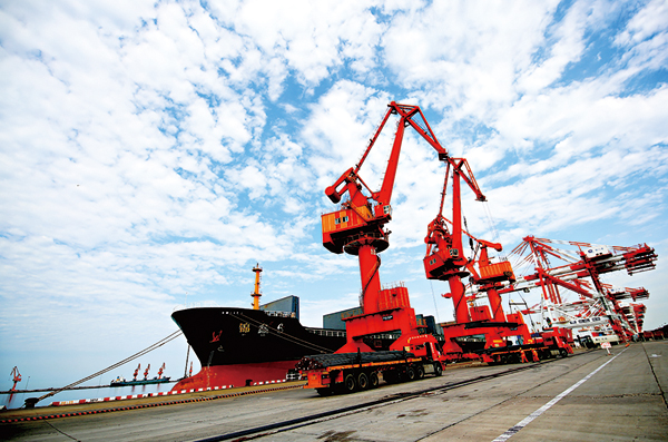圖為通過鐵路運(yùn)輸至遼寧省營口港的烏鋼鋼材正在裝船,準(zhǔn)備發(fā)往海外市場。