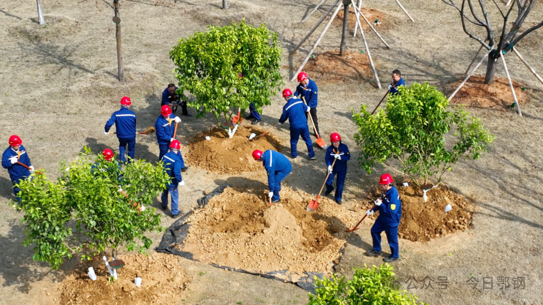 春風催新綠,植樹正當時。近年來,鄂城鋼鐵公司十分重視綠化工作,以“廠在林中,路在綠中,人在景中”為目標,建設“潔化、綠化、美化、文化”的園林式工廠,廠區綠化覆蓋率達到了40.6%。開展本次植樹活動,既是持續改善廠區綠化景觀效果,提升綠色發展指數的需要,也是在“雙碳”背景下,積極應對氣候變化,增加生態碳匯的重要舉措。