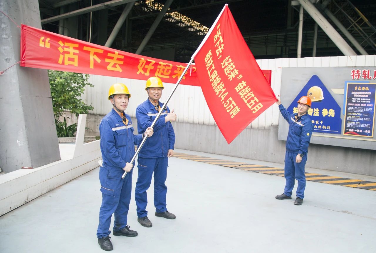 特軋廠負責人對接下來的“紅五月”作動員鼓勁,現場還舉行了“活下去、好起來,奮戰紅五月”授旗儀式。特軋廠負責人將象征責任與使命的產線目標旗交給板材工序、棒三線負責人。這是重任的交付、使命的傳遞,更是對特軋廠全員“奮戰紅五月”最強有力的號召。