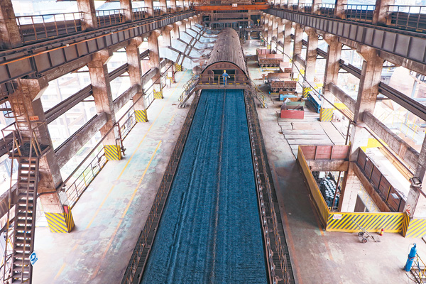 圖為更換新型滑道后運行中的6#燒結(jié)機。