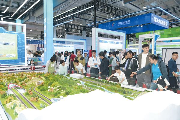圖為參觀者正在了解交通運(yùn)輸領(lǐng)域綠色智能船舶、古沉船打撈、智慧施工、自動(dòng)駕駛、高速鐵路、國(guó)際合作等方面的典型創(chuàng)新成果。
