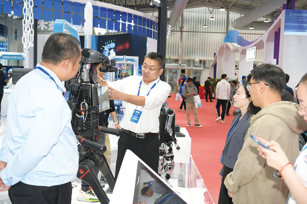 圖為科技周工作人員正在介紹一款人形機(jī)器人。其可以模仿人類行為,并和人類協(xié)作解決工業(yè)場(chǎng)景中遇到的各類問題。