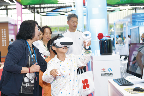 圖為一名小朋友佩戴VR(虛擬現(xiàn)實(shí))頭顯,通過聽覺、視覺、觸覺“三觀一體”的方式,身臨其境地體驗(yàn)“科學(xué)”號(hào)海洋科學(xué)綜合考察船等“科學(xué)奇觀”。