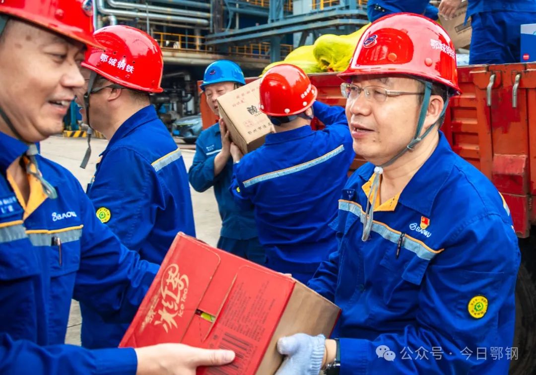 夏日送清涼,關(guān)愛暖人心。7月9日上午,鄂城鋼鐵公司領(lǐng)導(dǎo)分組,赴生產(chǎn)現(xiàn)場,慰問在酷暑中堅守崗位的職工,為他們送去金銀花露、鹽汽水、蘇打水、西瓜、綠豆等各類防暑降溫物資。