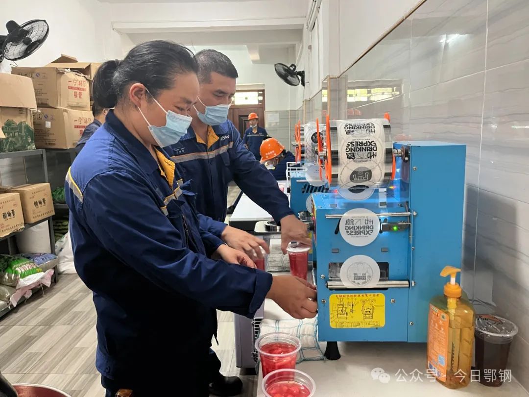 送“清涼”,高溫環境下,煉鐵廠每天制作綠豆湯、酸梅湯等消暑飲品,送到檢修作業現場;給每個班組備足風油精、清涼油等防暑降溫藥品;廠領導深入基層,為一線職工送去咸伙計、綠茶、西瓜等降溫物資。
