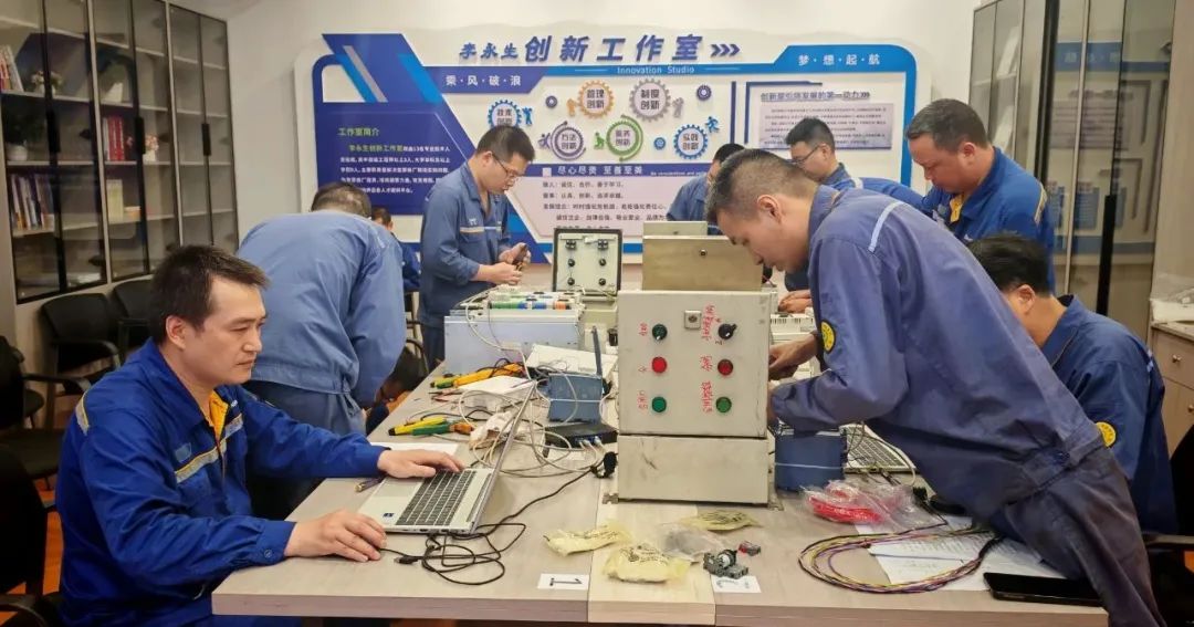 近日,鄂城鋼鐵公司寬厚板廠“李永生創(chuàng)新工作室”,十幾名職工正忙碌地進(jìn)行編程、調(diào)試及設(shè)備功能測試。2小時后,一聲洪亮的聲音響起,“時間到,各選手退場,小組長留下進(jìn)行功能演示,然后現(xiàn)場評分。”