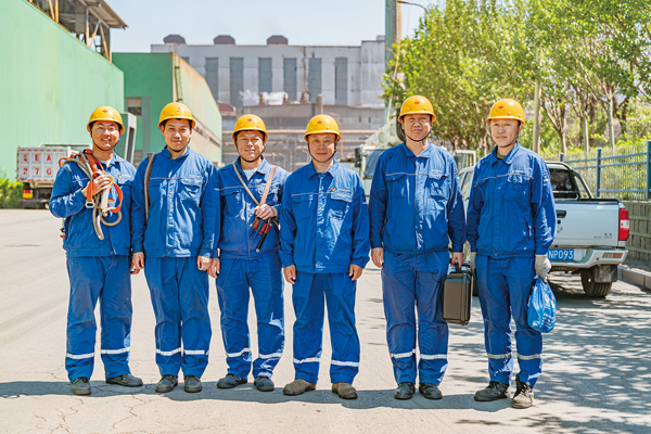 本鋼板材能源管控中心電力外線(xiàn)組既有會(huì)登高攀爬的“蜘蛛俠”,也有能駕馭新型巡檢設(shè)備的無(wú)人機(jī)操作手。圖為部分組員合影。