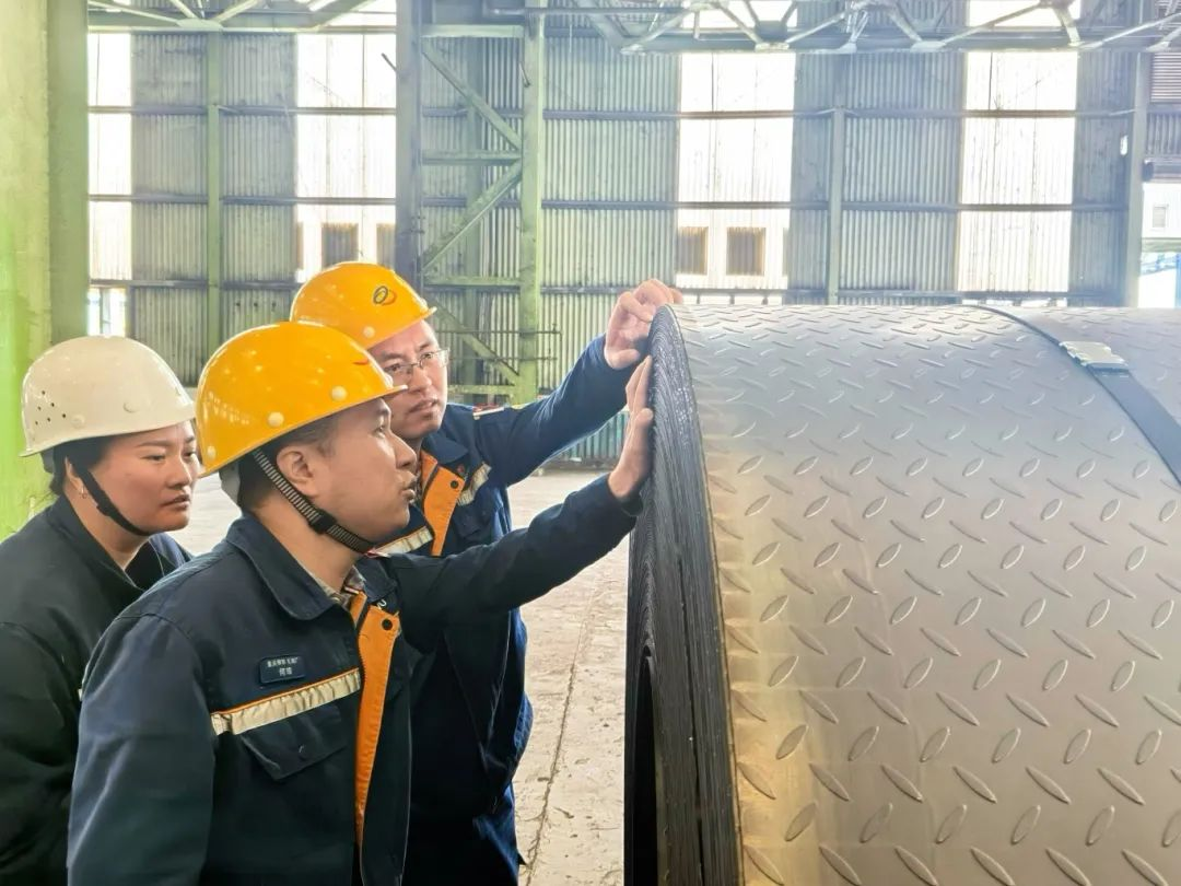 “固定側(cè)導(dǎo)板位置,控制帶鋼穩(wěn)定,是一個解決問題的方向。”陳啟發(fā)說到。技術(shù)團(tuán)隊結(jié)合現(xiàn)場實際,多次制定、修正解決方案,最終針對厚規(guī)格新增卷取側(cè)導(dǎo)板位置環(huán)控制模式,在帶鋼頭部過夾送輥后,卷取側(cè)導(dǎo)板進(jìn)入位置環(huán)控制,固定擺位不動,使側(cè)導(dǎo)板糾偏時無法被帶鋼擠開。同時現(xiàn)場操作人員根據(jù)卷取側(cè)導(dǎo)板火花情況,調(diào)整“拍邊余量”,有效控制層間不齊缺陷,降低卷取側(cè)導(dǎo)板磨損。卷取側(cè)導(dǎo)板位置環(huán)控制功能的投用,有效避免了層間不齊缺陷,5-8月實現(xiàn)了層間不齊“0”降級,有效提升了鋼卷產(chǎn)品質(zhì)量。該《熱卷產(chǎn)線厚規(guī)格層間不齊卷形缺陷改善措施》項目獲公司二季度“優(yōu)秀創(chuàng)新成果”一等獎。(李鳳、陳軍、何璋)