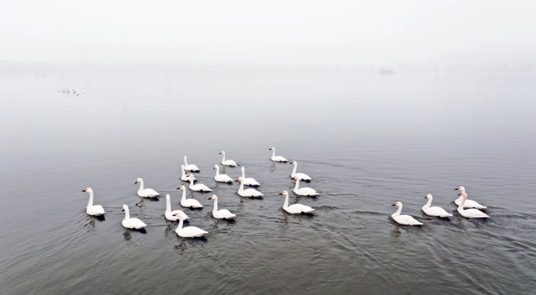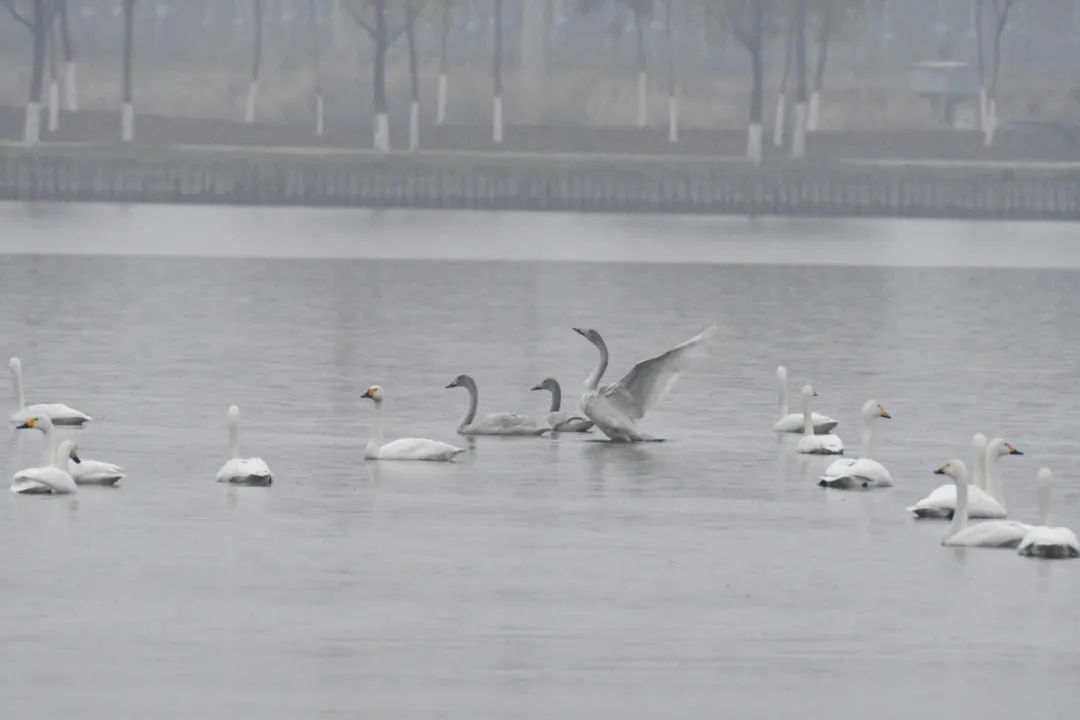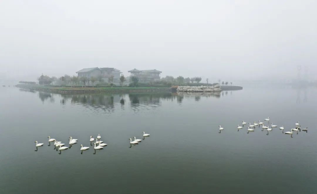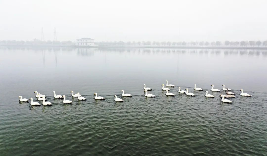 初冬的一場(chǎng)雨水過(guò)后,晉南鋼鐵太子湖被一層薄紗般的霧氣籠罩,在這如夢(mèng)似幻的天氣,大批天鵝翩翩飛臨太子湖棲息。與往年不同的是,今年飛臨此地的天鵝數(shù)量多達(dá)上百只,成為企業(yè)綠色低碳發(fā)展的最美“代言人”。