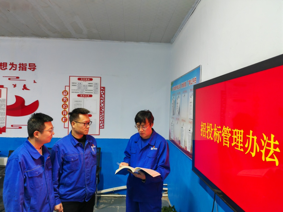 圖為管理人員學(xué)習(xí)招投標(biāo)管理辦法