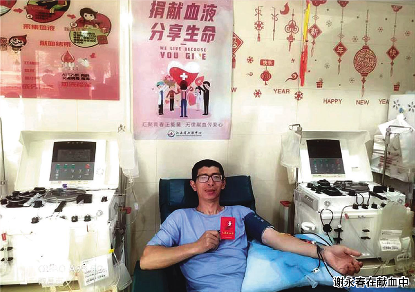 自從得知獻血能救人后,謝永春便走上了義務獻血之路,并暗下決心要一直獻下去,以幫助更多需要幫助的人?!捌鋵崼I血,不僅需要有健康的身體,還需要有良好的生活習慣?!敝x永春說,為了提高自身血液質量,他改掉了許多不良生活習慣,并加強身體鍛煉。