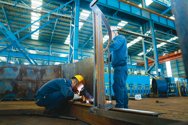 新鋼維檢中心聚焦縮短設備故障時間,提高維檢質量,嚴控費用,并大力推動備品備件自制自修。圖為該中心檢修人員利用空閑時間制作圓盤給料機封閉外罩。