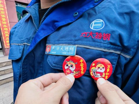 方大特鋼軋鋼廠員工互贈祝福胸針 李亞洲 攝