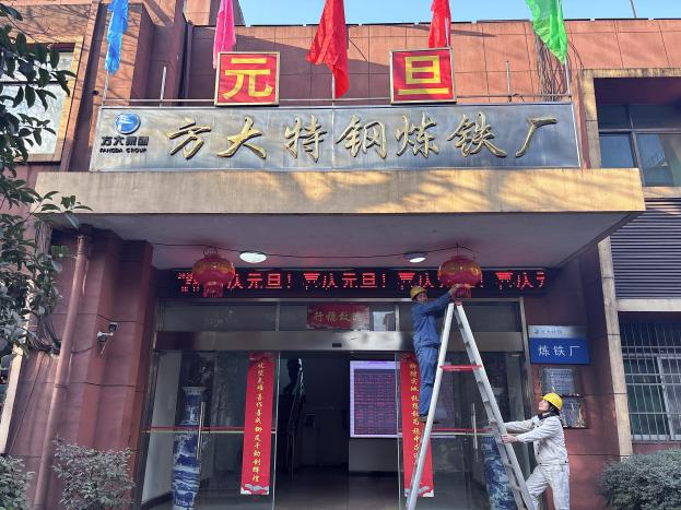 方大特鋼煉鐵廠員工掛燈籠喜迎元旦 萬娟娟 攝