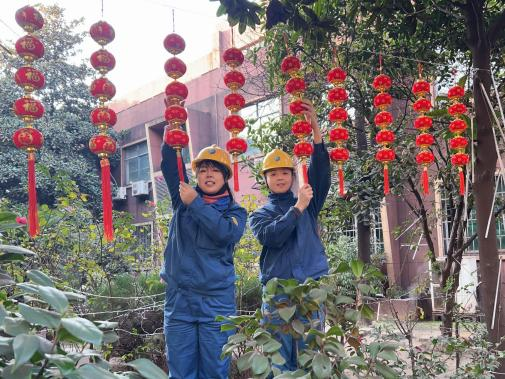 該公司煉鐵廠員工在廠辦公樓區(qū)域掛上紅火的燈籠,映襯出十足的節(jié)日氛圍。
