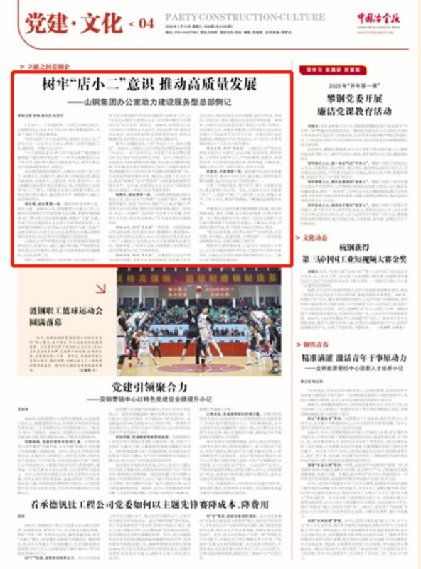 相信他們將在2025年繼續樹牢好“店小二”意識,助力山鋼集團高質量發展。