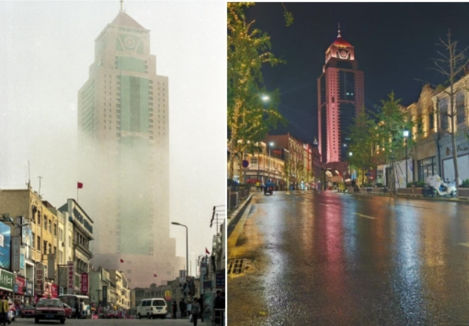 圖為1999年中山路百盛大廈 2023年中山路百盛大廈