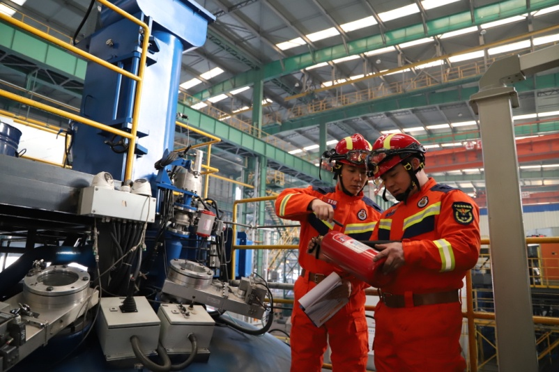 圖為:張宣科技消防應急技術人員正在檢查重點區域防火工作