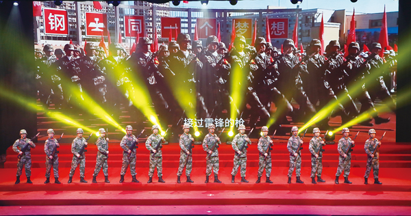 圖為鞍鋼礦業公司保衛部職工表演的雷鋒主題歌舞《接過雷鋒的槍》。