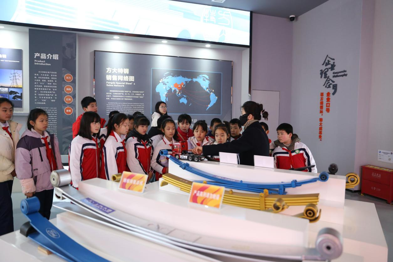 在方大特鋼工作人員的帶領下,青少年們乘坐著小巴士穿梭在鋼鐵與綠樹組成的叢林之中,來到一個個景點有序參觀。在企業文化展示館,孩子們仔細打量著展示的各種原材料、生產設備設施模型、成品樣品,了解鋼鐵冶煉工藝過程中的奇妙變化;在智慧管控中心,映入眼簾的超大屏幕上,實時變動的各種生產經營數據,激發孩子們探索數字智能化的欲望;在焦化濕地景觀與鋼鐵文化園內,各種充滿奇思妙想的大型鋼鐵工藝品與孔雀、天鵝、錦鯉等讓孩子們目不暇接……