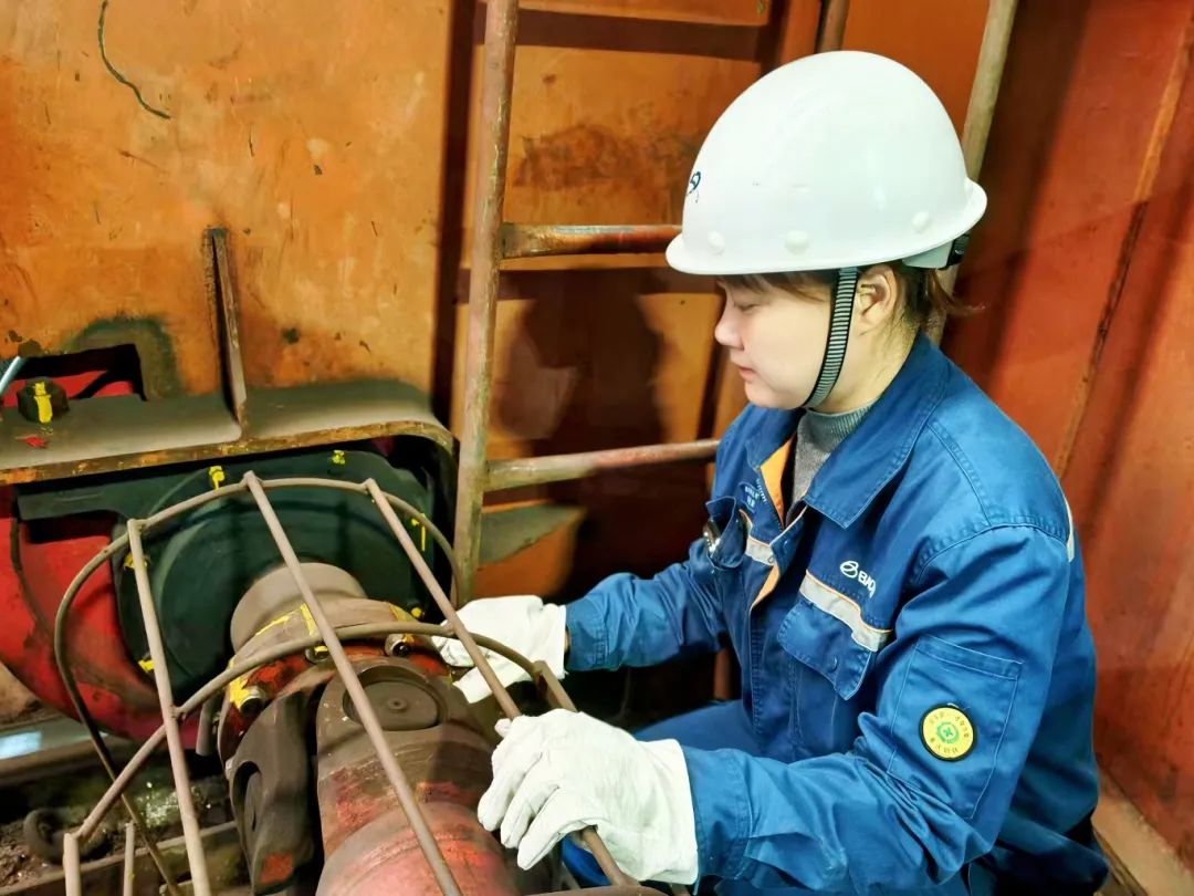 一次在上崗前巡檢時(shí),她察覺(jué)行車(chē)電機(jī)運(yùn)轉(zhuǎn)聲音有異常,她立即蹲下并側(cè)耳細(xì)聽(tīng),即便是在嘈雜的現(xiàn)場(chǎng),微弱的異響也無(wú)法逃過(guò)她的“法耳”,她迅速取出對(duì)講機(jī)聯(lián)系維修人員前來(lái)排查處理,及時(shí)消除了一個(gè)設(shè)備安全隱患。