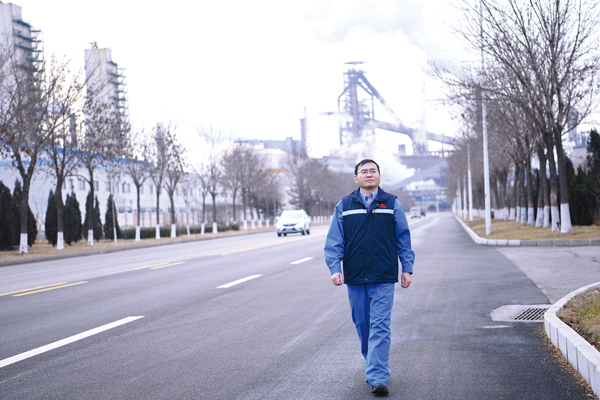 圖為郭佳寧行走在首鋼京唐公司廠區(qū)道路上。