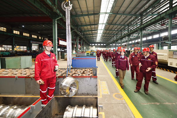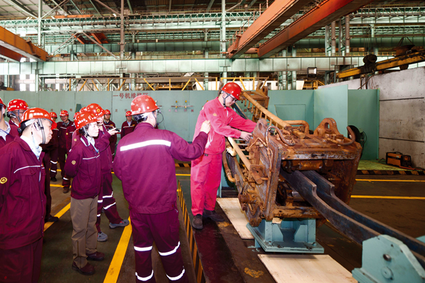 在沙鋼金工車間,員工用“小發(fā)明”讓設(shè)備維修效率翻倍,更讓維修成本“瘦身”。圖為觀摩團(tuán)成員路過時,一線員工正用自制器具安裝軸承座。