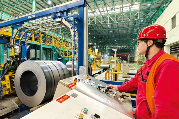 圖為沙鋼超薄帶二車間4號精整線用“智能”重新定義“安全”——防燙報警、遠(yuǎn)程取樣、自動防護(hù),每一處細(xì)節(jié)都在詮釋“本質(zhì)安全”。圖為該產(chǎn)線員工正操作設(shè)備生產(chǎn)。