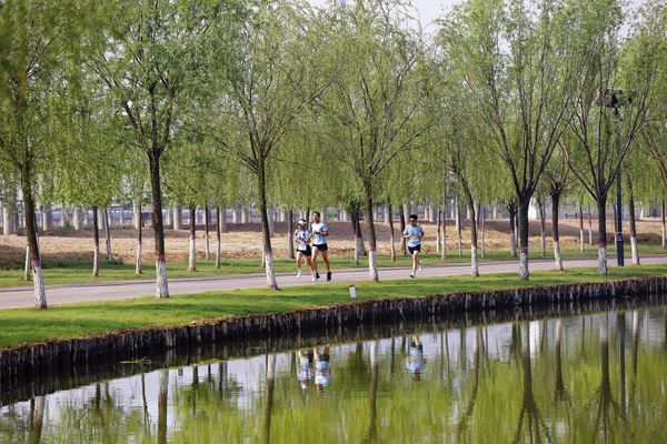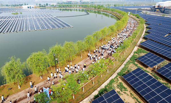 圖為中外跑步愛好者齊聚一堂,共同享受運動的快樂,感受鋼企綠色發展的魅力。