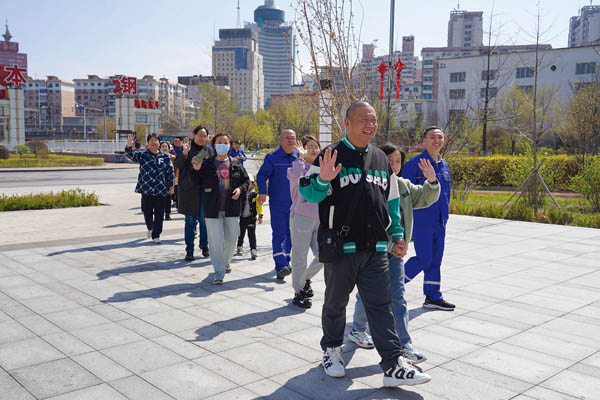 圖為職工家屬參觀本鋼百年歷史的中央廣場后合影留念。