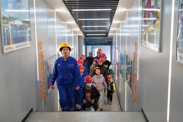 圖為職工家屬參觀板材熱連軋廠2300生產(chǎn)線。