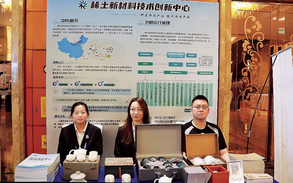 圖為包鋼稀土院天津分院在中國(guó)稀土學(xué)會(huì)第六屆青年學(xué)術(shù)會(huì)上展出的“稀饒”茶具。 (本報(bào)記者 朱亞明 攝)
