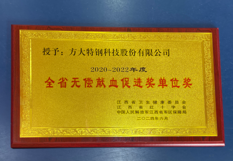 方大特鋼獲江西省無償獻(xiàn)血促進(jìn)獎(jiǎng)單位獎(jiǎng)