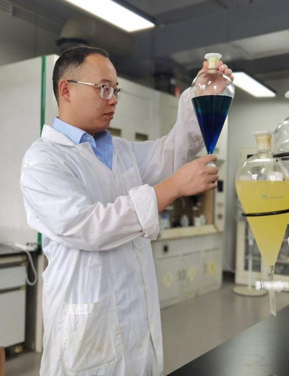 釩的回收率提升和高純產品制備,一直以來都是釩資源提取及利用領域科研人員致力攻 關的核心技術。攀鋼采用高爐冶煉釩鈦磁鐵礦,其中約21%的釩進入到高爐渣中,經高爐渣提鈦后 形成含釩精制尾渣,若不能實現有效資源化利用,將嚴重制約攀西地區釩資源的高效開發和整體利用效率。為了解決精制尾渣中釩的高效選擇性提取及高純釩產品制備關鍵技術難題,汪勁鵬一頭扎進實驗室連續奮戰,和項目組成員反復討論、不斷優化技術方案,爭分奪秒地開展系統性試驗。為揭示精制尾渣提取過程中釩的轉變機制,他頻繁往返于院分析測試中心電鏡室,成為那里的“常客”。