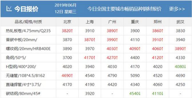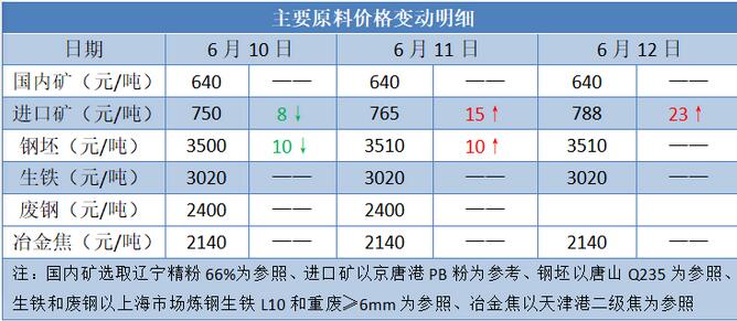 6月10日,全國24個主要市場螺紋鋼 20mm HRB400E平均價格4021元/噸,較上個交易日下調(diào)19元/噸;6月11日,全國24個主要市場螺紋鋼 20mm HRB400E平均價格4015元/噸,較上個交易日下調(diào)1元/噸;6月12日,全國24個主要市場螺紋鋼 20mm HRB400E平均價格4028元/噸,較上個交易日上調(diào)8元/噸。