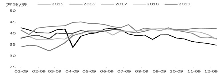 在高礦價(jià)驅(qū)動(dòng)下,2019年1—6月我國國產(chǎn)礦產(chǎn)量呈增長態(tài)勢(shì),但受環(huán)保及安全檢查影響,產(chǎn)量增長幅度較為有限。2019年1—6月,鋼聯(lián)統(tǒng)計(jì)的266座礦山鐵精粉日均產(chǎn)量40.2萬噸,同比增長2.1%。國家統(tǒng)計(jì)局公布的1—5月中國原礦累計(jì)產(chǎn)量為3.35億噸,同比增長0.14億噸(4.4%),折成鐵精粉同比增長約470萬噸。全年來看,若原礦產(chǎn)量累計(jì)同比增長5%,預(yù)計(jì)2019年國產(chǎn)鐵精粉同比增長0.13億噸。