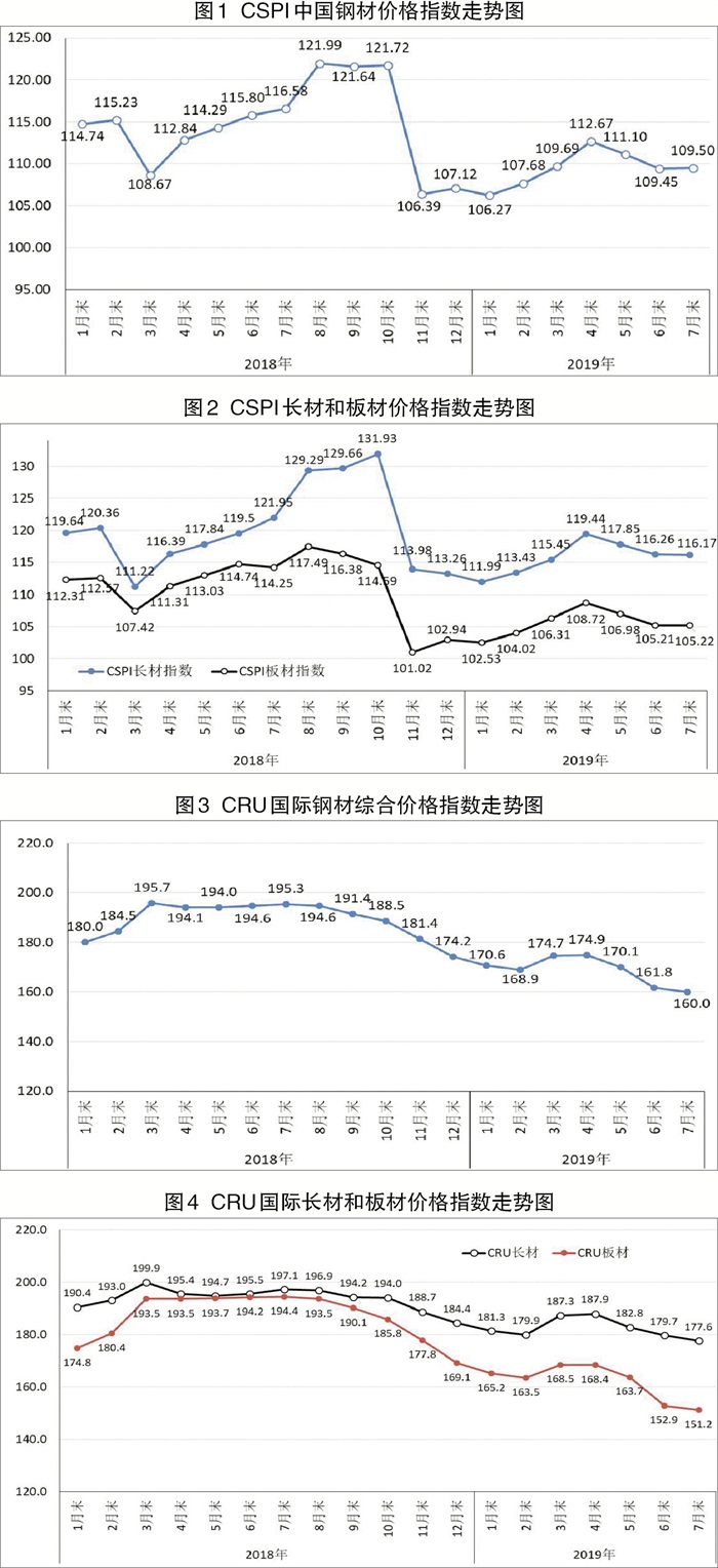 7月末,鋼協CSPI中國鋼材價格指數為109.50點,環比上升0.05點,升幅為0.05%,環比由降轉升;同比下降7.08點,降幅為6.07%。(見圖1)