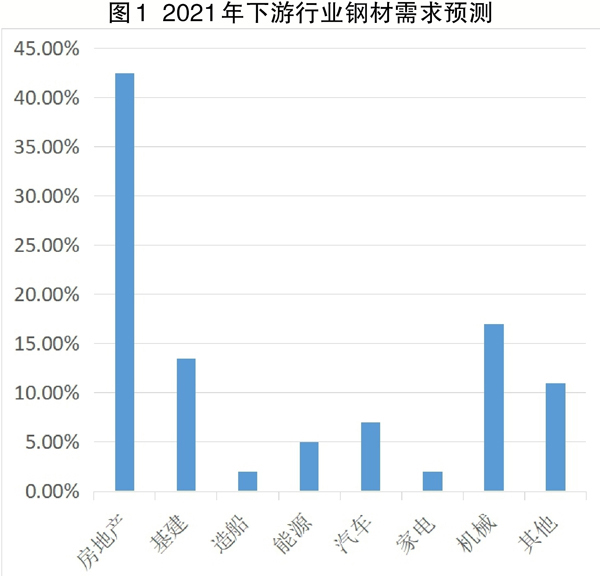 從各省份今年初以來陸續開工的重大工程項目數量來看,今年制造業將繼續保持強勁勢頭。鋼貿商據此預計,2021年我國制造業增速或將與GDP增速實現同步。據業內機構預測,2021年機械制造業鋼材消費量將達到5.8億噸,同比增長1.0%。汽車、家電、鐵路、集裝箱、鋼木家具等下游行業的鋼材消費量將大幅上漲,助力“鋼需”強度持續增強(見圖1)。