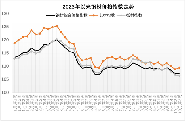 10月16日—10月20日當(dāng)周,國內(nèi)鋼材綜合價格指數(shù)上漲,長材價格指數(shù)有所上漲,板材價格指數(shù)繼續(xù)下降。
