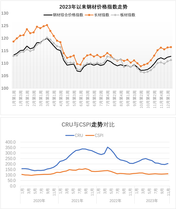 12月11日—12月15日當周,國內鋼材價格指數小幅上漲,長材價格指數有所上漲,板材價格指數小幅上漲。