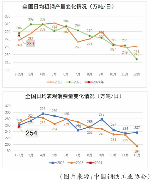 中國鋼鐵工業(yè)協(xié)會(huì)數(shù)據(jù)顯示,今年前2個(gè)月,全國平均日產(chǎn)粗鋼279.90萬噸(如圖)。3月中旬,重點(diǎn)統(tǒng)計(jì)鋼企累計(jì)生產(chǎn)粗鋼2047.58萬噸、生鐵1836.12萬噸、鋼材1965.22萬噸。其中,粗鋼日均產(chǎn)量達(dá)到204.76萬噸,旬環(huán)比下降0.51%;生鐵日均產(chǎn)量達(dá)到183.61萬噸,旬環(huán)比下降0.41%;鋼材日均產(chǎn)量達(dá)到196.52萬噸,旬環(huán)比增長1.95%。“預(yù)計(jì)短期內(nèi)市場資源將減少,有利于緩解供需矛盾。”梁太庚表示。