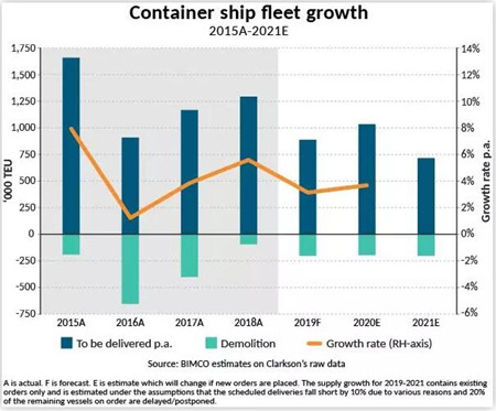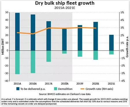 在上述假設下,BIMCO預計2019和2020年的干散貨船運力增速為3%左右。
