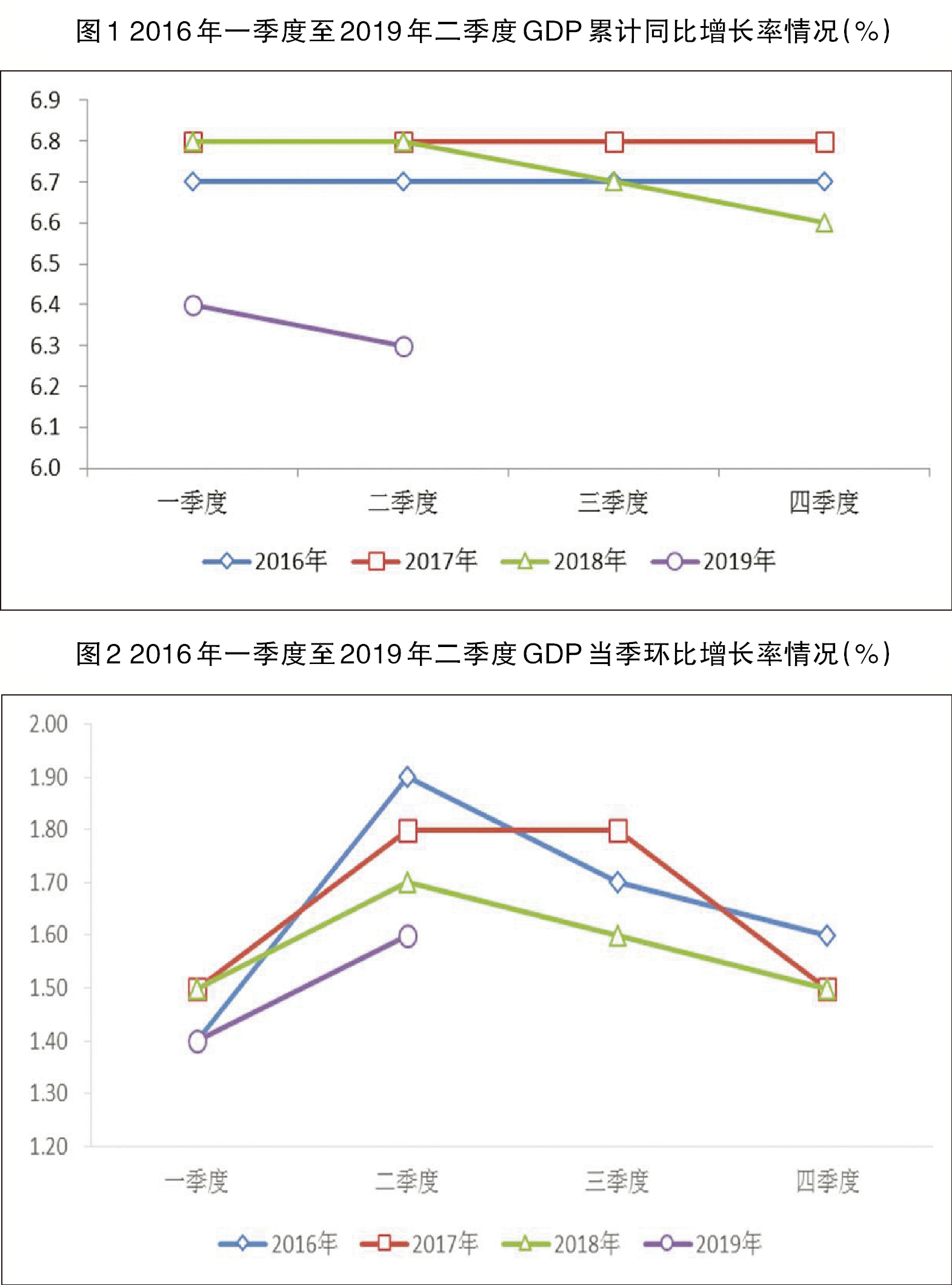 從環比增長率看,2019年第二季度GDP環比增長1.6%,增速較第一季度加快0.2個百分點(見圖2)。實際上,今年第二季度GDP是在第一季度環比增長1.4%的基礎上繼續加速增長。