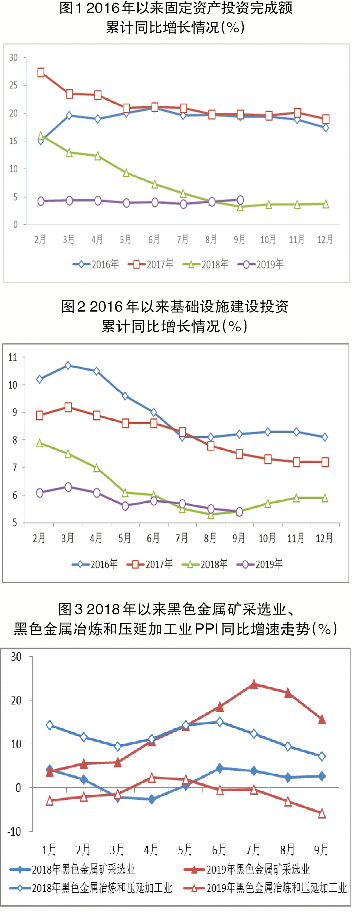 據國家統計局發布的信息,前三季度,宏觀經濟總體運行平穩,增長結構得到改善,雖然增速有所放緩,但保持在合理區間。其中,固定資產投資同比增速回落明顯,特別是第二產業固定資產投資同比增速低于去年同期;工業投資增速同比回落,但對經濟增長的貢獻率提升;基建投資增速近期有所加快,拉動作用逐漸顯現;原燃料類產品價格與黑色金屬冶煉和壓延加工業產品價格分別一升一降,鋼企利潤空間被壓縮。