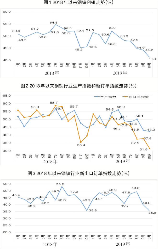 據中物聯鋼鐵物流專業委員會調查、發布的數據,10月份,鋼鐵行業PMI(采購經理指數)為41.3%,環比下降2.9個百分點,為近46個月的最低水平。從分項指數來看,10月份,鋼材市場需求減少,鋼廠生產有所下降,企業采購意愿不強,鋼鐵產品價格和原材料價格均下降。