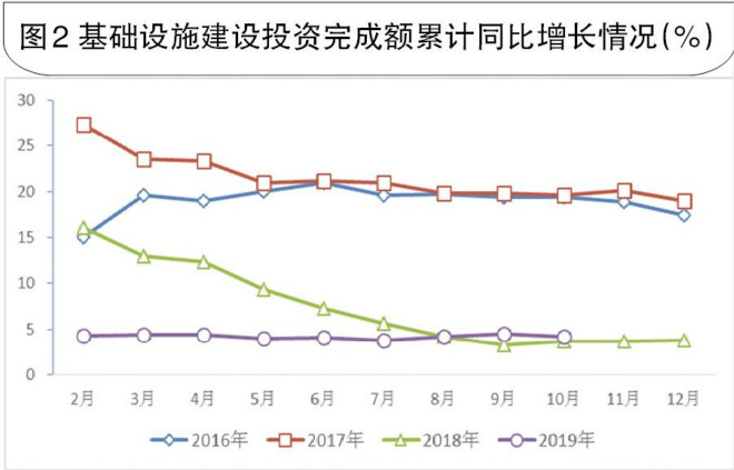 圖2 基礎設施建設投資完成額累計同比增長情況(%)