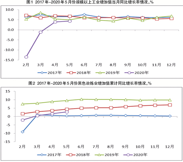多數(shù)制造業(yè)下游行業(yè)增加值增速處在負(fù)增長(zhǎng)區(qū)間,增加值增速在正增長(zhǎng)區(qū)間運(yùn)行的行業(yè)較4月增加一個(gè)(專用設(shè)備制造業(yè))。其余下游行業(yè)增加值仍在負(fù)增長(zhǎng)區(qū)間運(yùn)行,但降幅延續(xù)收窄態(tài)勢(shì)。與下游行業(yè)增加值同比增速情況相比,黑色冶煉業(yè)增加值已有3個(gè)月在正增長(zhǎng)區(qū)間運(yùn)行,且累計(jì)同比增速呈逐月加速上漲態(tài)勢(shì)。上述情況表明,1月~5月份期間,鋼鐵行業(yè)供給的恢復(fù)速度明顯快于下游用鋼需求的恢復(fù)速度,且這一差距正在逐步擴(kuò)大。