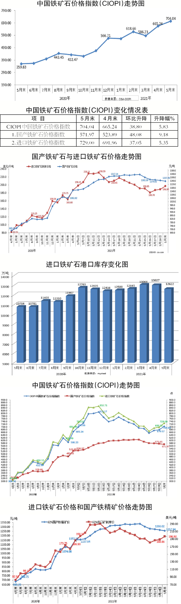6月份,鋼鐵產量小幅下降,鐵礦石進口量和港口庫存環比減少,鐵礦石價格繼續上升且升幅擴大,總體呈高位波動走勢。