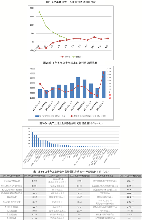 2021年上半年工業利潤增長主要由化工醫藥制造業、材料制造業、采礦業3類工業行業拉動